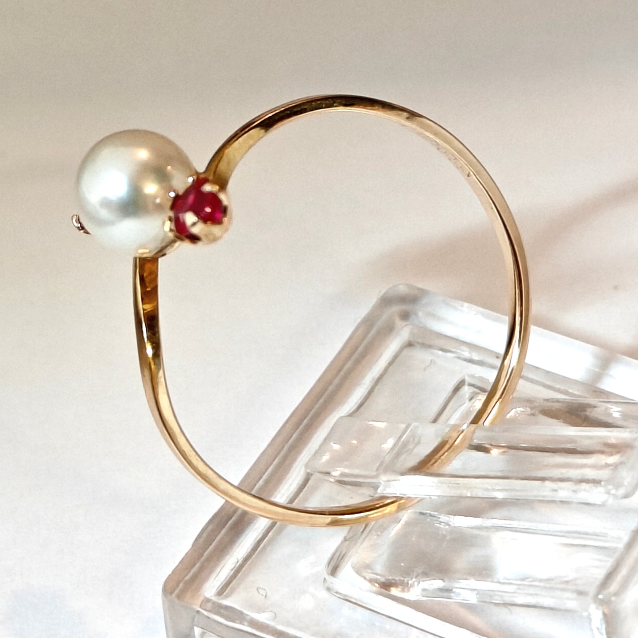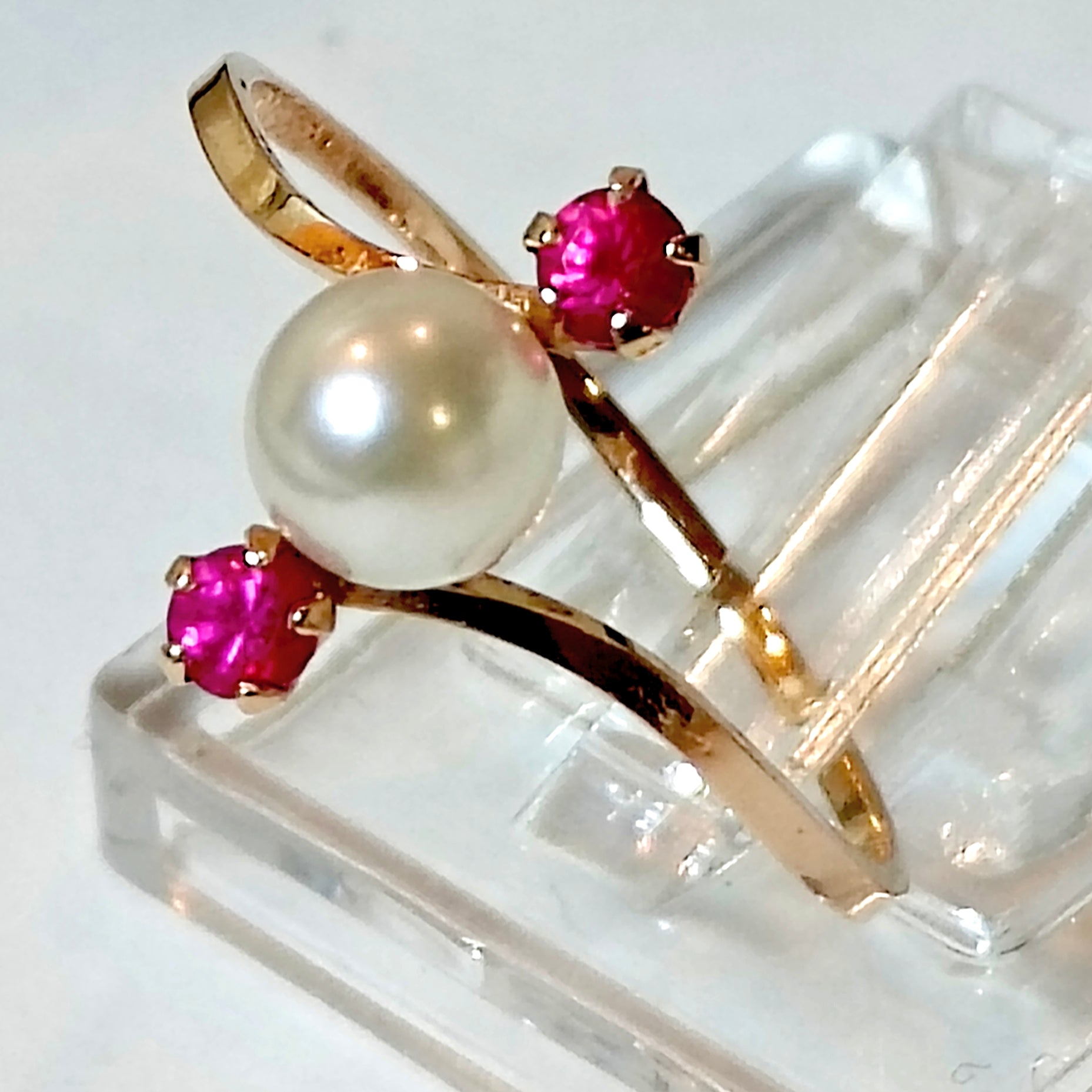 Kaunis helmisormus kahdella punaisella zirkonialla.
