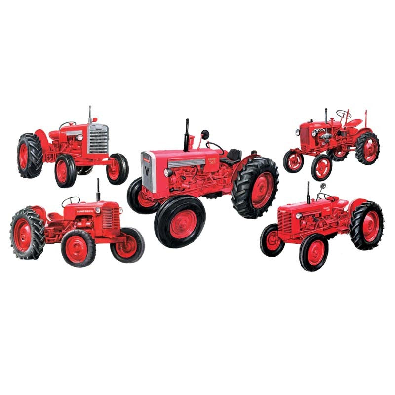 Mukissa on 1950- ja 1960 -lukujen traktorimallien kuvat: Valmet 15, Valmet 20, Valmet 33D, Valmet 359D, Valmet 361D Valmet 565.
