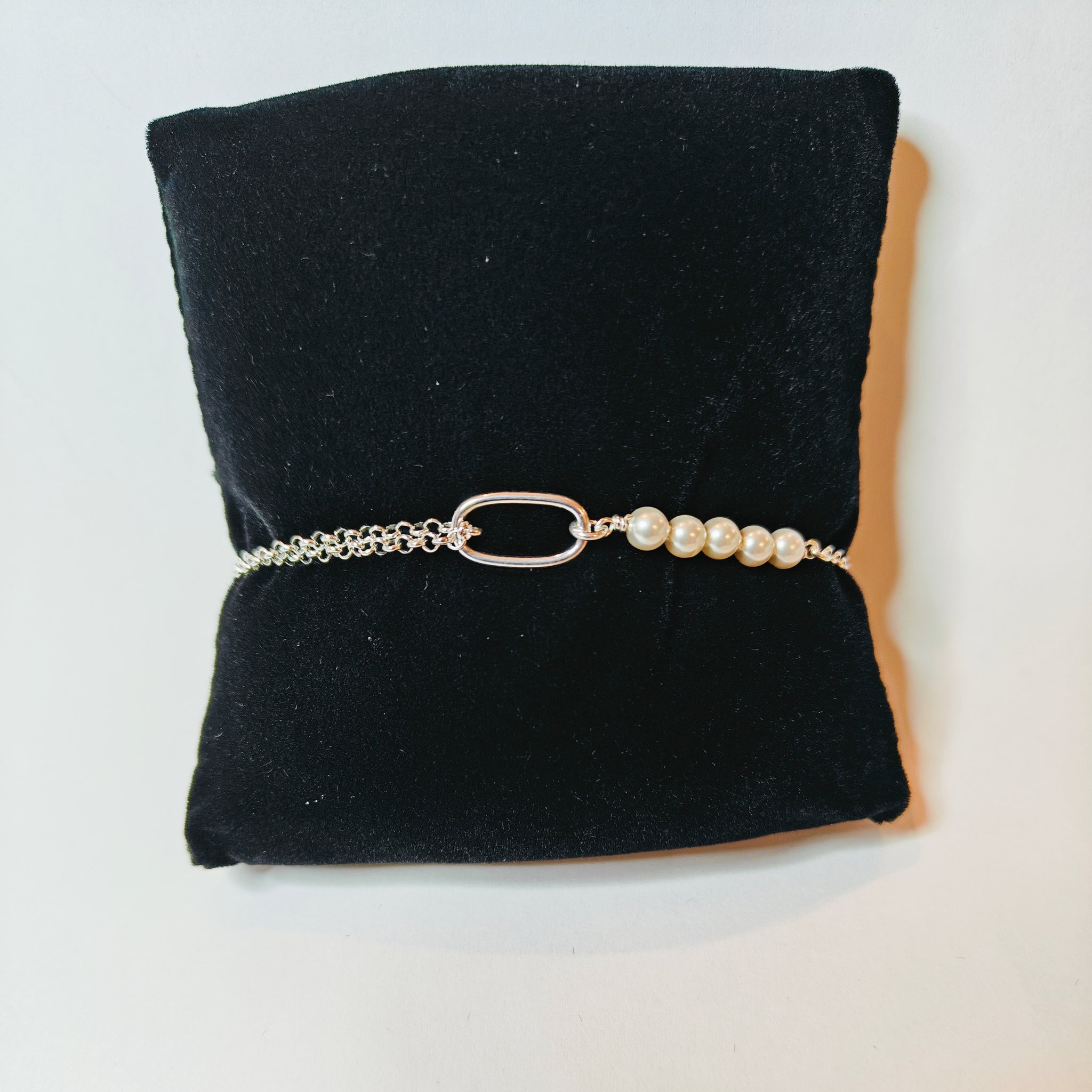 • Lataa kuva Galleria-katseluun, Hopeinen rannekoru synteettisillä helmillä 17+3cm