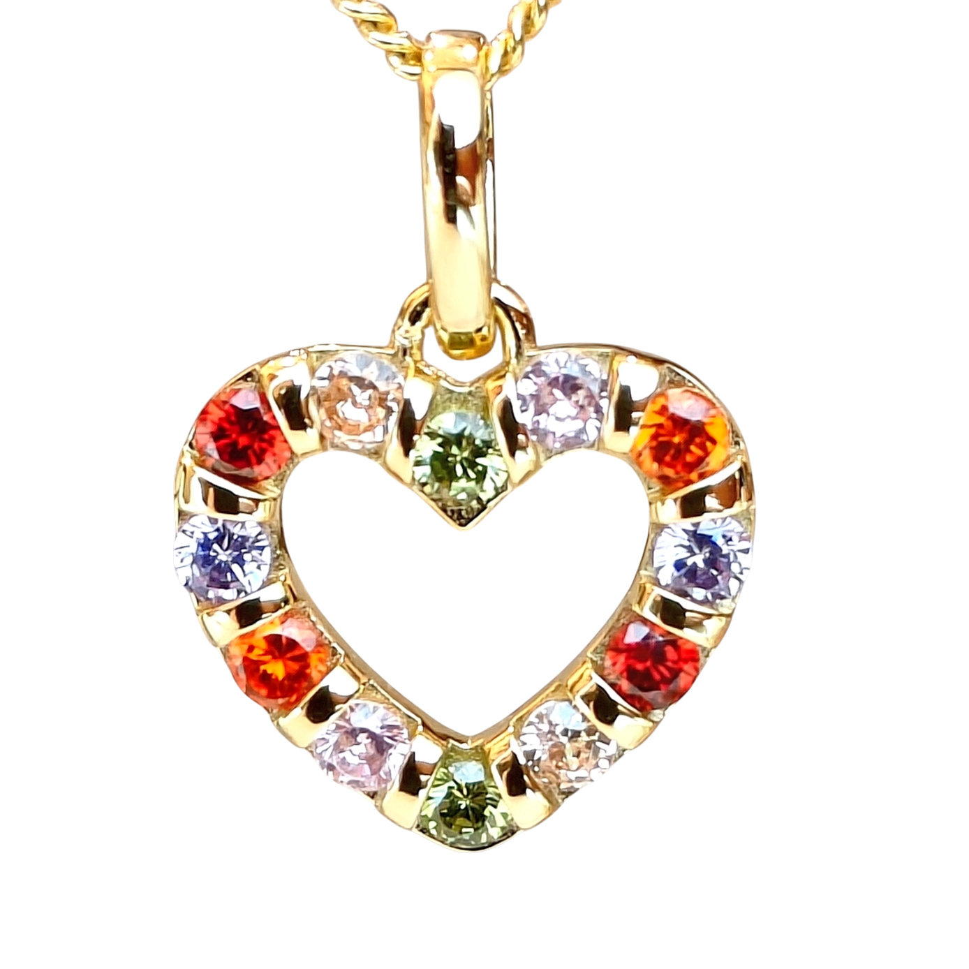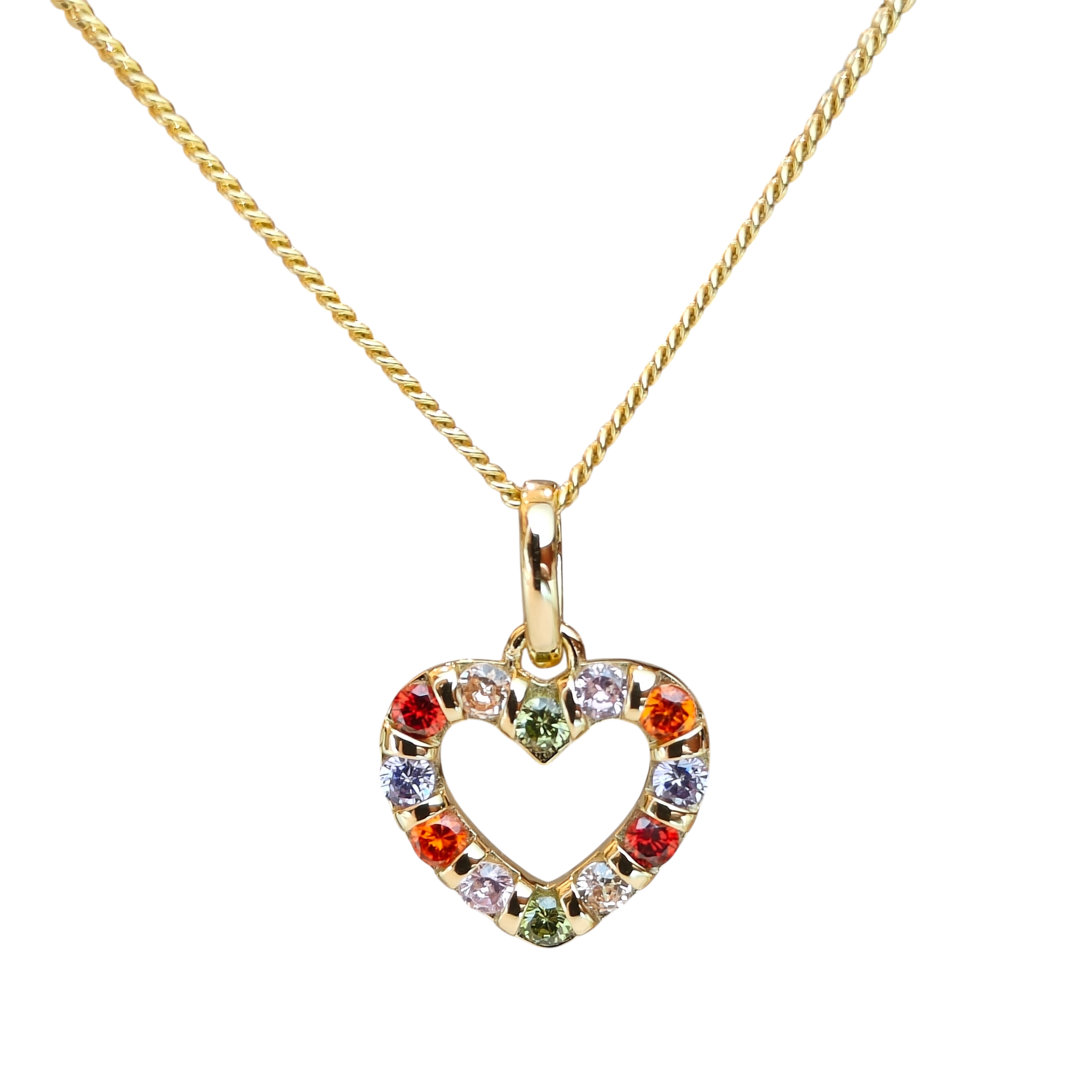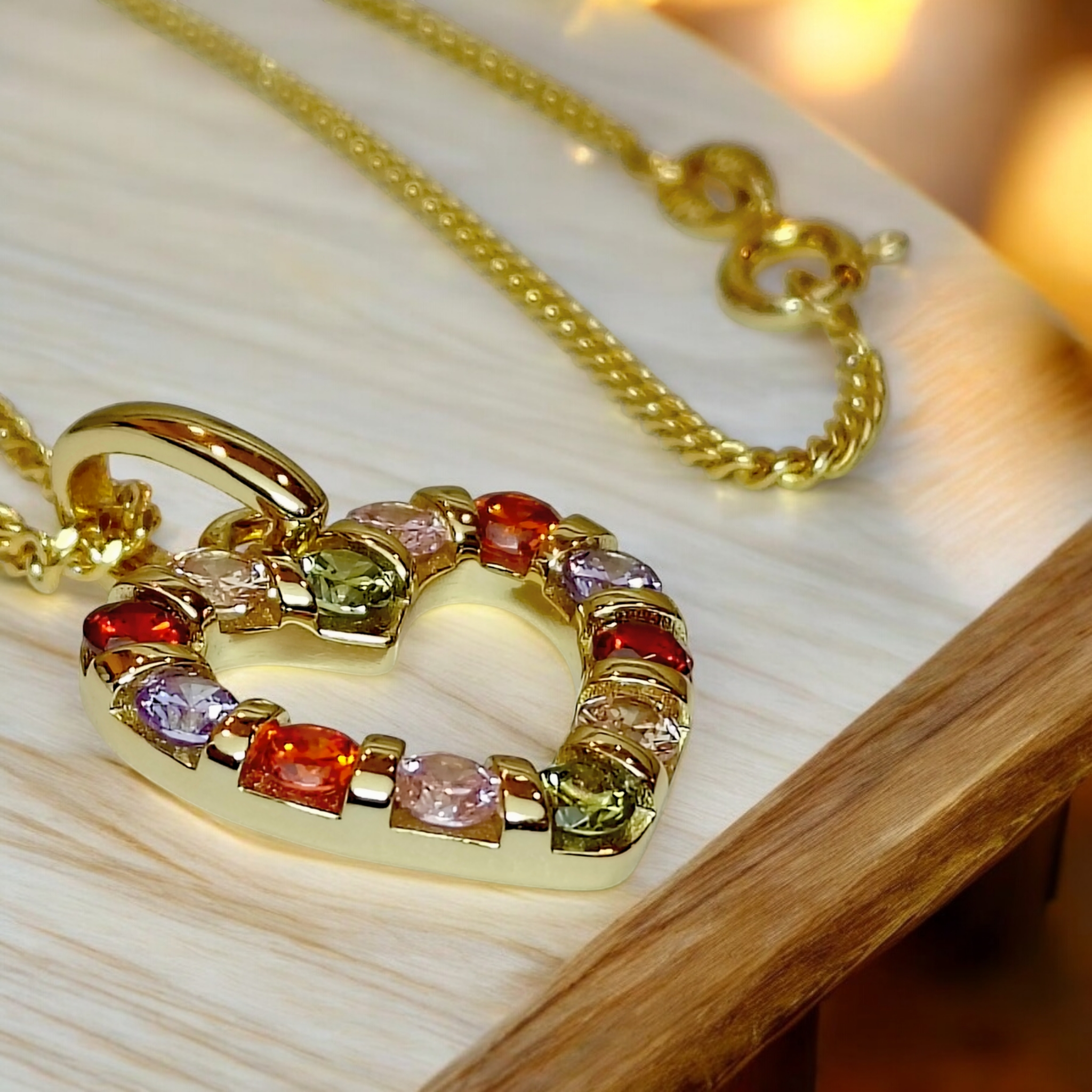 Värikivi- sydän kaulakoru 55cm , keltakullattua hopeaa