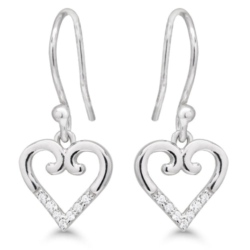 Sydän korvakorut zirkoneilla 10mm, hopea
