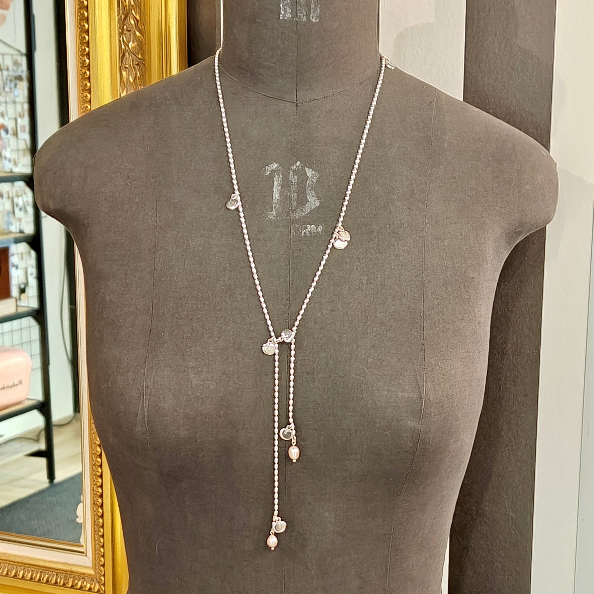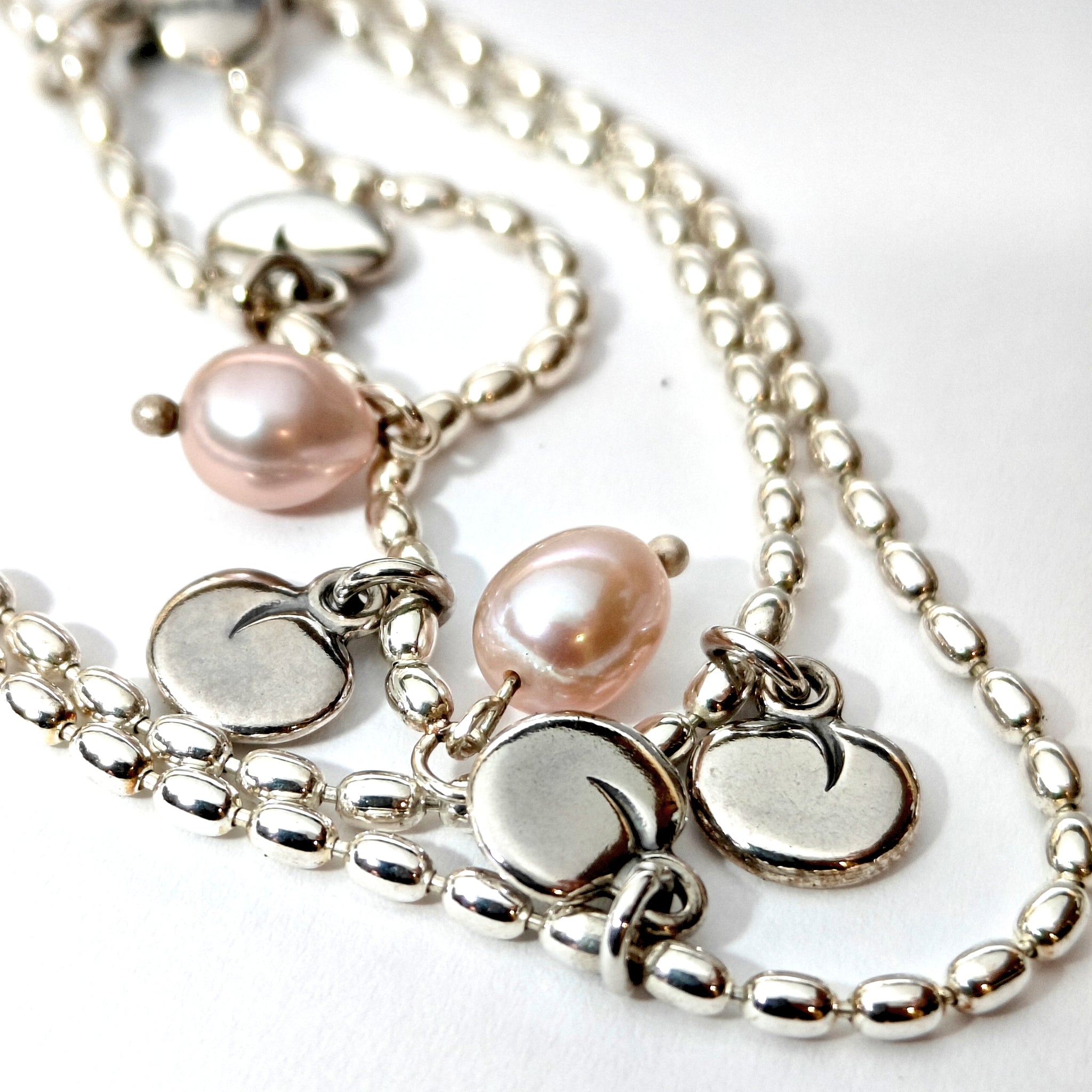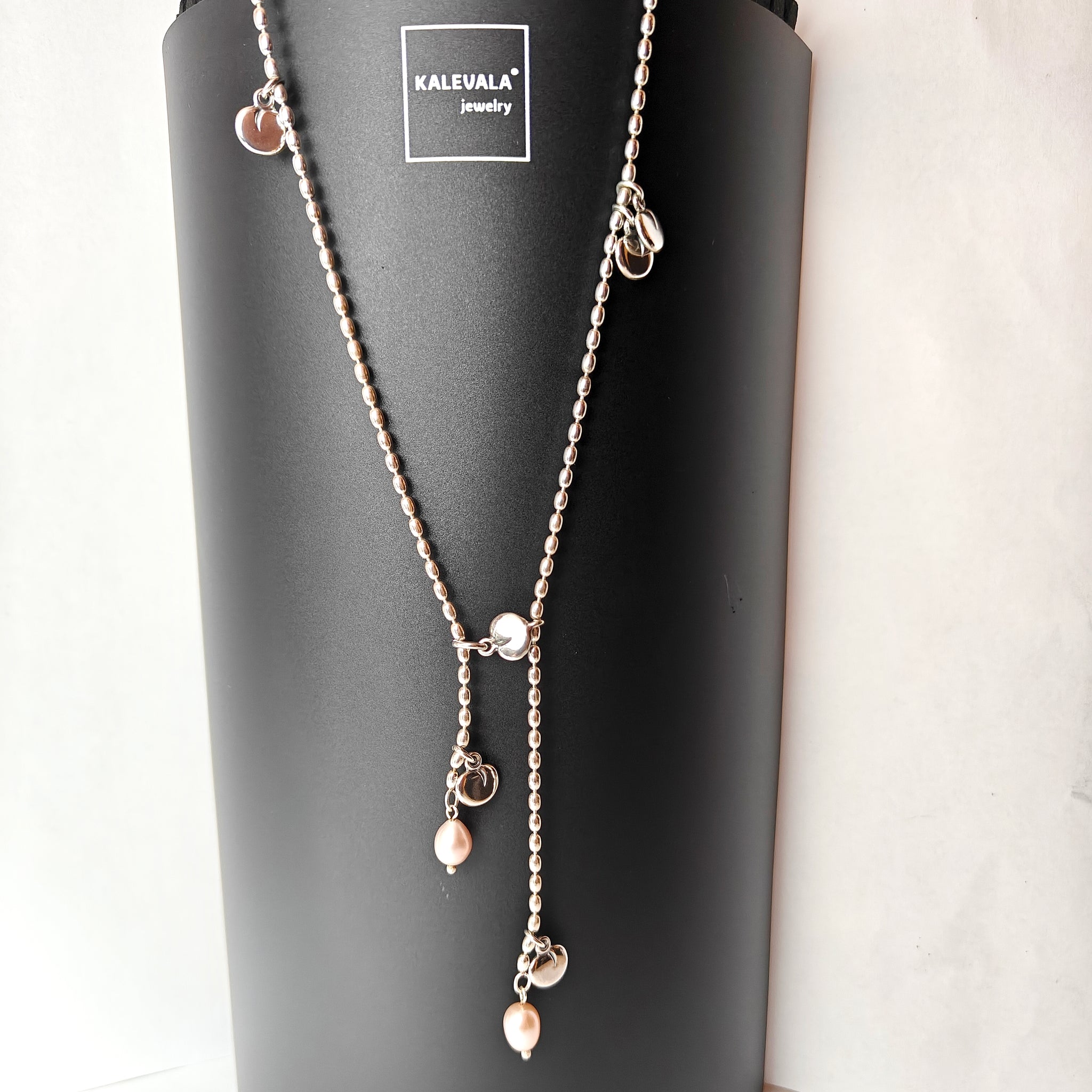 Kalevala Vanamo kaulakoru 80cm vaaleanpunaisilla helmillä, hopea, second hand