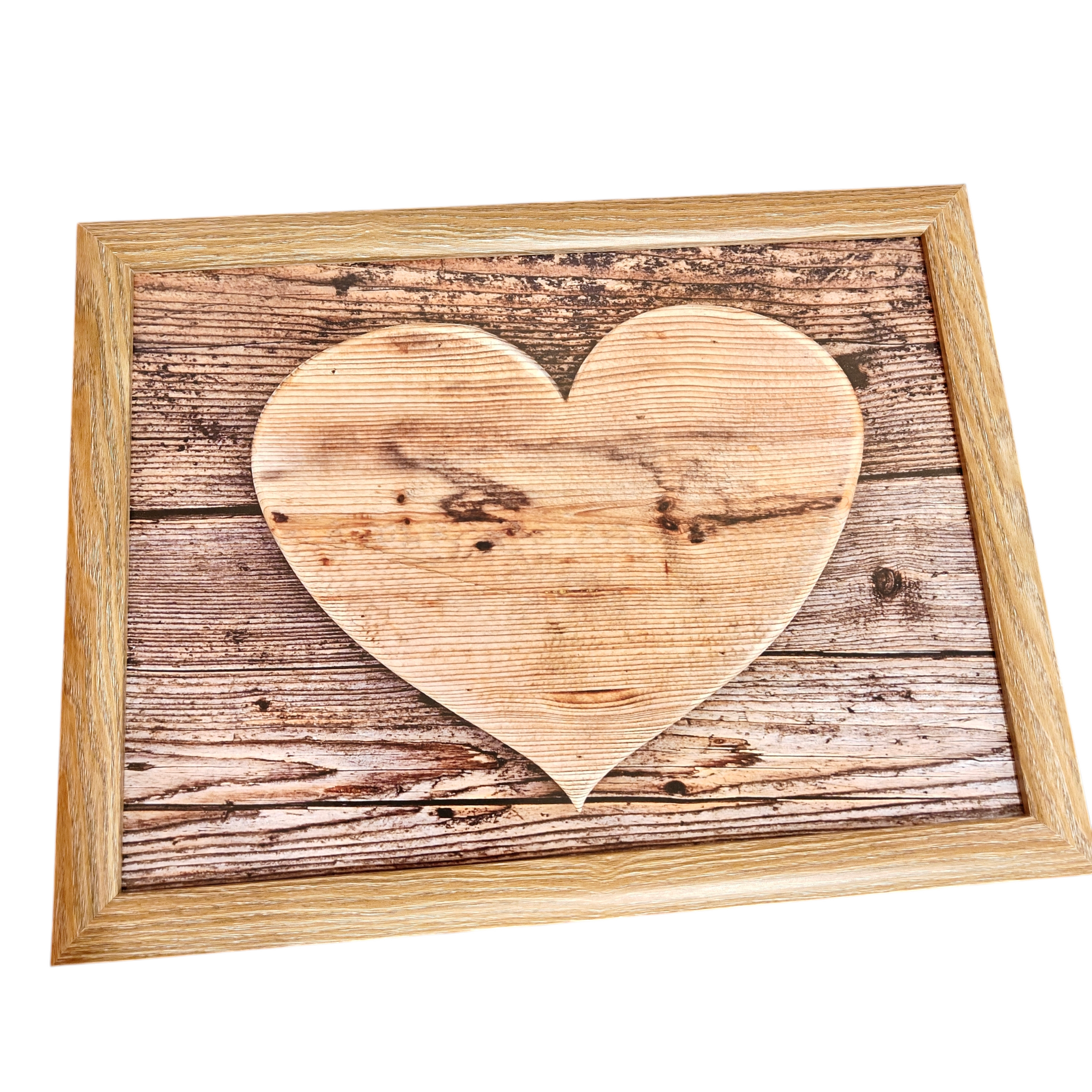 Sylitarjottimen koko on 43 x 32,5 x 6 cm. Kannessa kaunis kuva vanhan puun pinnassa olevasta sydämestä. Alapuoli ruudullinen valkoista ja beigeä.