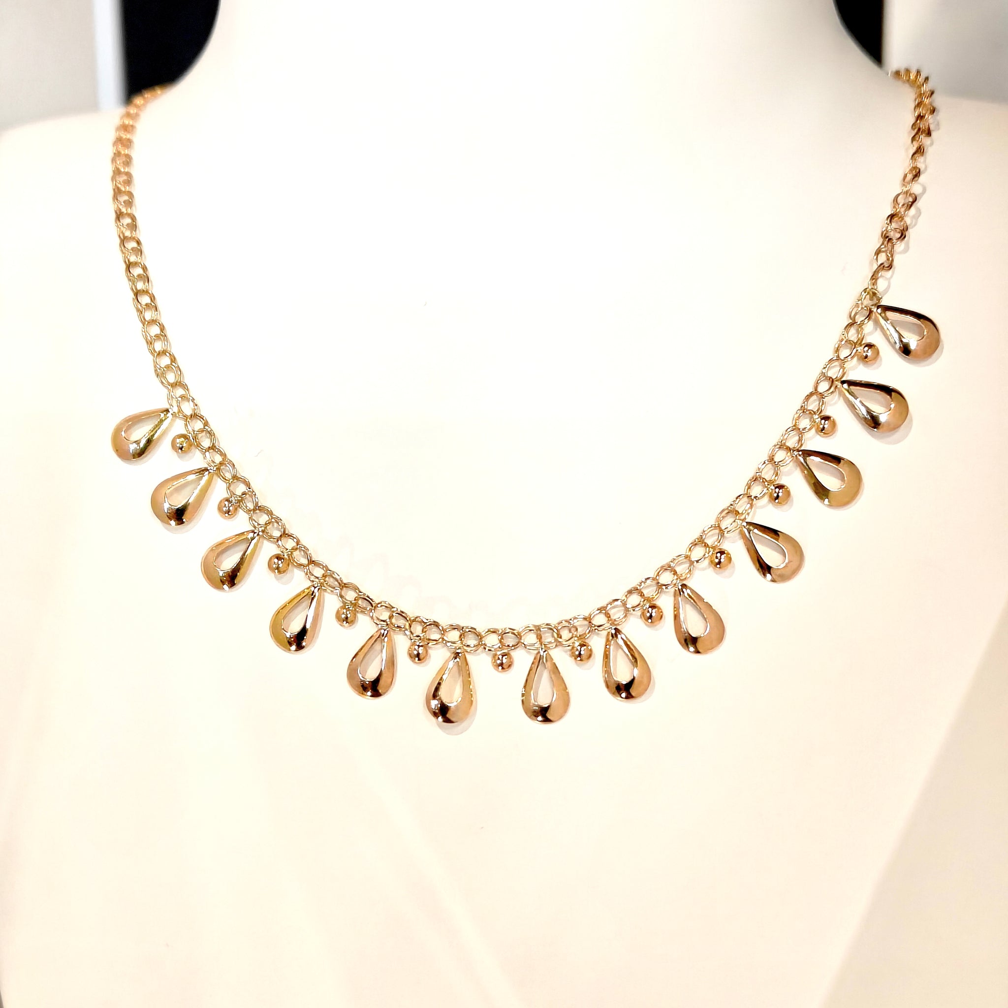 • Lataa kuva Galleria-katseluun, Bismarck kulta kaulakoru pisaroilla ja palloilla 48cm, second hand