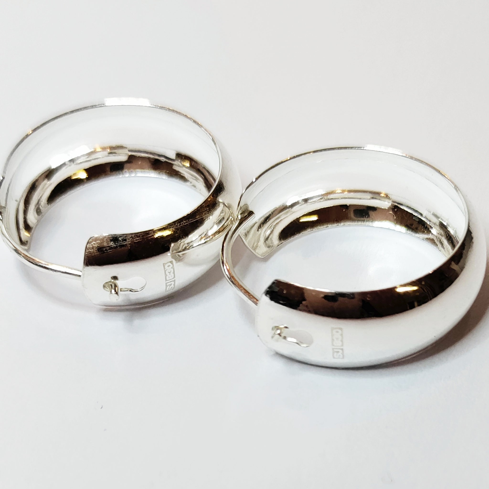 Leveät hopeiset korvarenkaat puolipyöreällä profiililla.