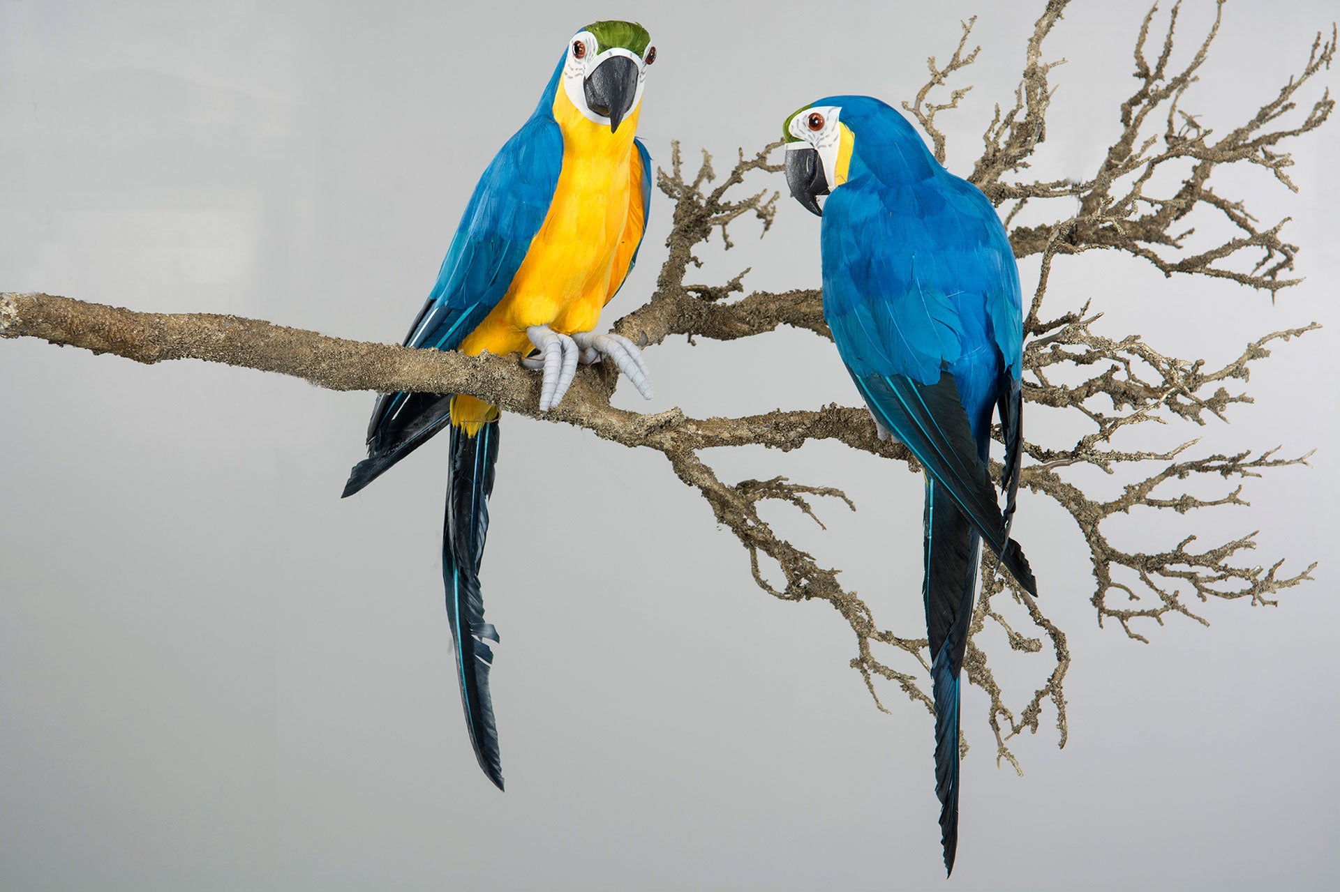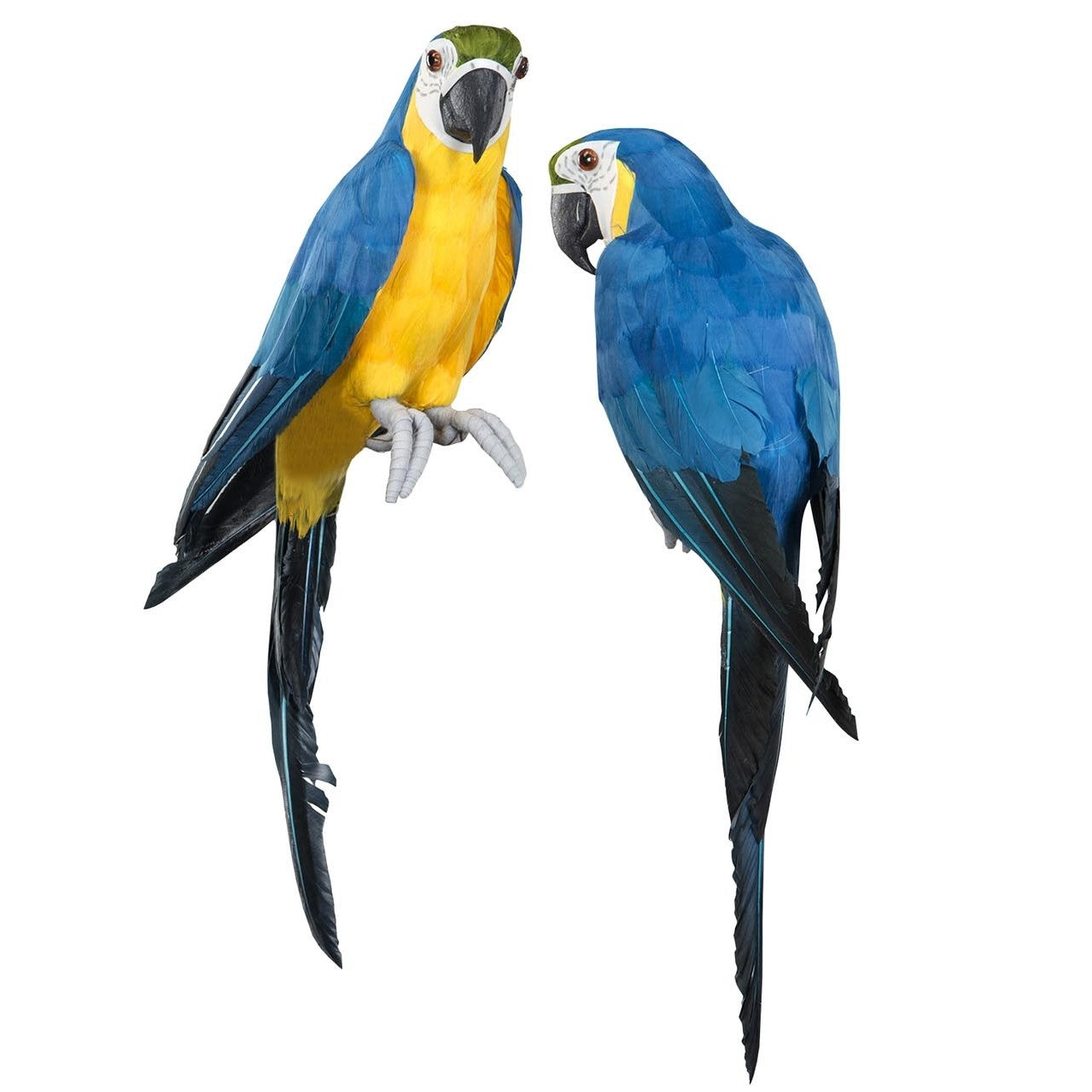Värikäs papukaija, joka on tehty oikeista höyhenistä ja styroksista. Täydellinen valinta, kun haluat kotiisi eksoottisen ilmeen. Luonnollisen kokoinen eli melko näyttävä!