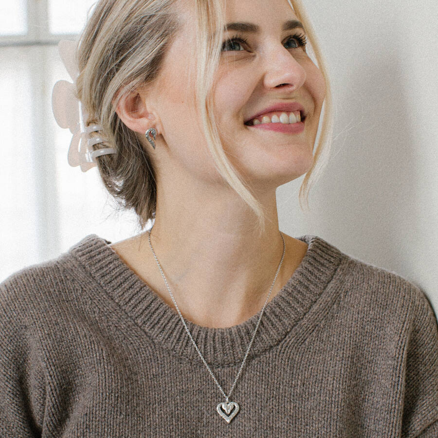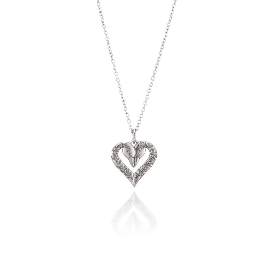 The heart size of the Swans' Net pendant is 19x20mm and the chain is 45/50 cm long, meaning the clasp can be attached to the intermediate link at 45 cm and the chain can be used as both 45 cm and 50 cm long.